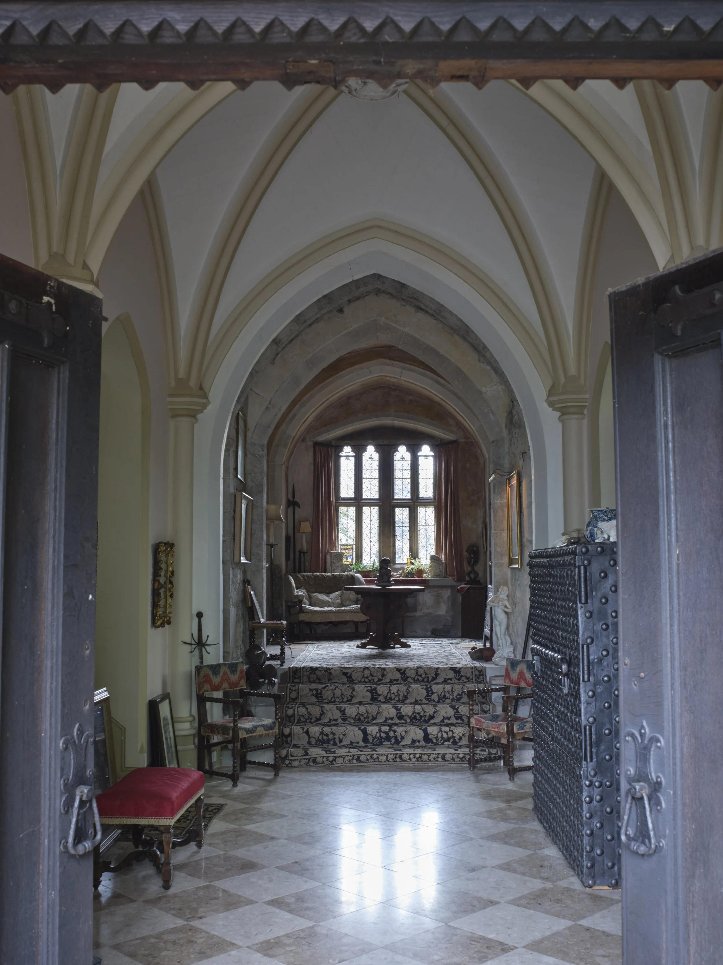 Set amid idyllic grounds where peacocks roam, and surrounded by battlements and a moat, this medieval castle is deeply romantic. Probably erected on a Roman site, although Bronze Age implements and copper ingots suggest it has long been inhabited, the castle is steeped in history and lavishly adorned with art and decorative objects of significant importance - although somehow it still exudes a comfortable charm. Quite unexpectedly each of the many bedrooms are decorated with patterned wallpapers in pleasing slightly faded tones which creates a warm juxtaposition to the stone surfaces which underpin everything else. Imposing yet inviting, this location is completely private, enshrouded by beautifully mature trees on the outskirts of a Kentish village close to the sea.